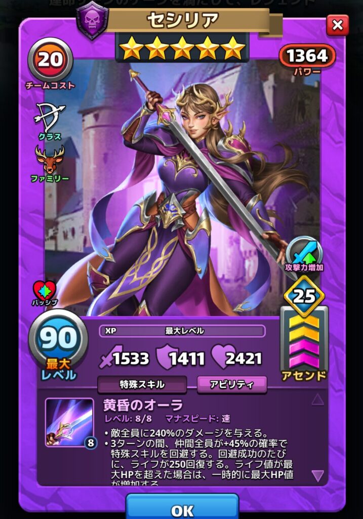 なのでコスチュームボーナスありきのステータスで英雄の選択をしてしまうと、思っていたステータスまで育たないという落とし穴があるのです。