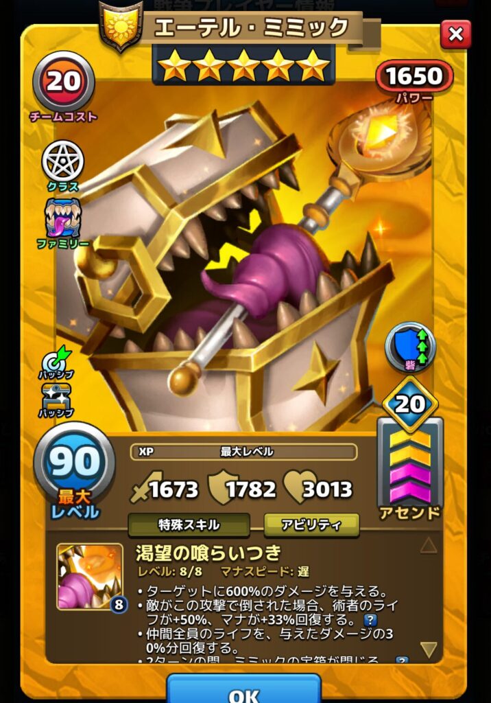 エーテル・ミミックはミミックファミリーの星5英雄です。