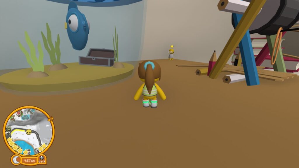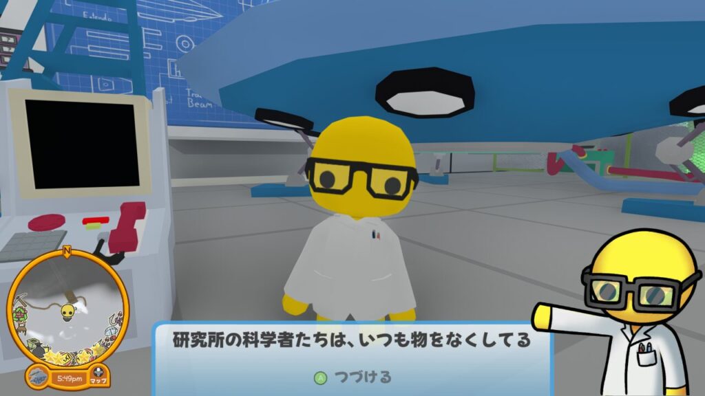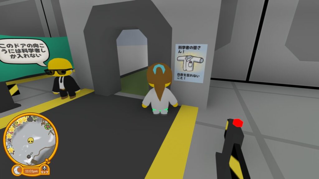 お次は画面左奥に見える水槽付近にいる科学者を見つけに行きましょう。