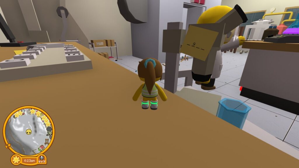 最後は画面奥に見える棚に隠れている科学者を見つけに行きます。結論から言うとあの棚に2人の科学者ウォブリーが関わっているので、実質あそこを攻略すれば全員発見となります。