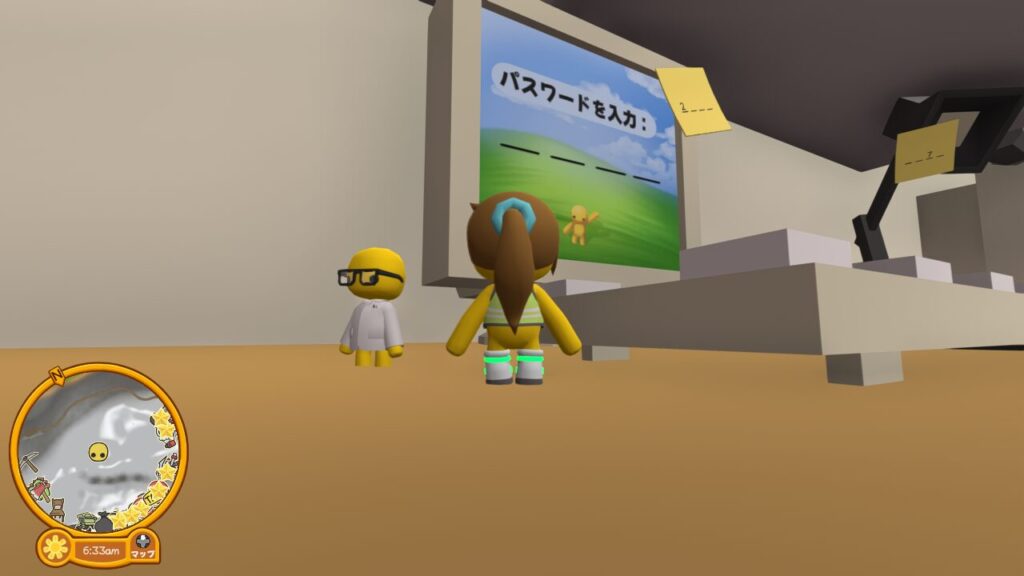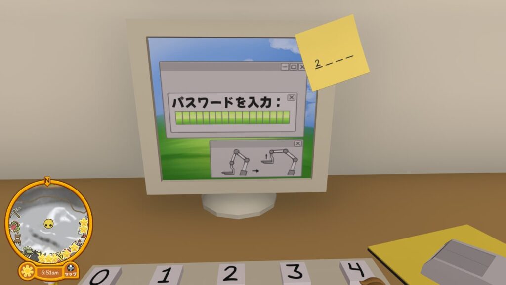棚の上に辿り着くといくつかのパスワードのメモ書きが貼ってあるので覚えるかメモしましょう。