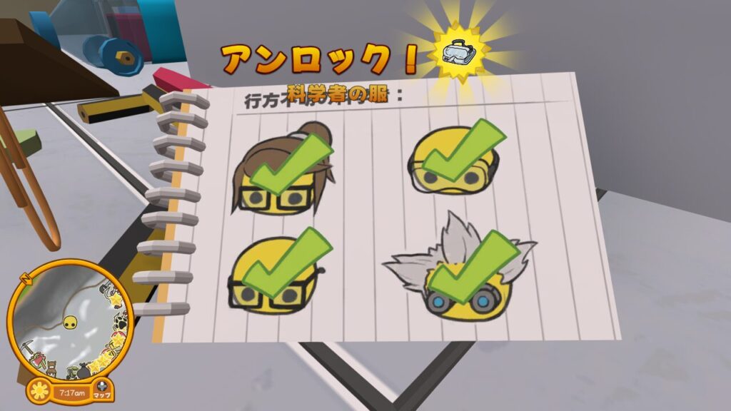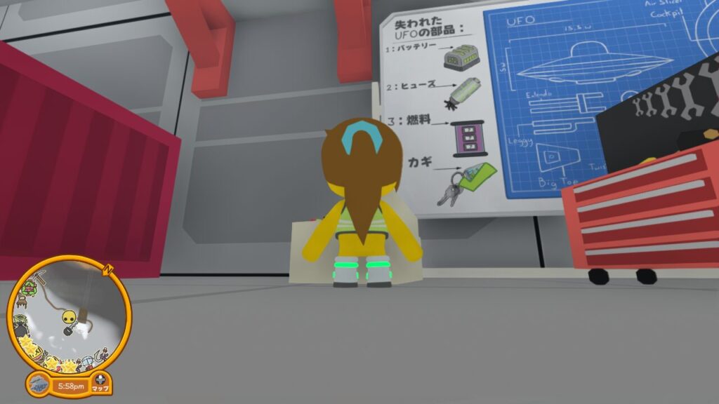 ↑別途記事を作成しますが、実はこの小さくなれるラボ内では他にも様々な隠し要素が絡んでおり、UFO修理タスク以外にも色々な報酬に関わっています。