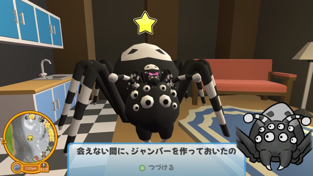 で、面倒くさがりの筆者は、その全てのタスクを同時進行でこなしてやろうと企み、コハク、迷子の子グモのタスクをカギのタスクと一緒に進めていたのです。