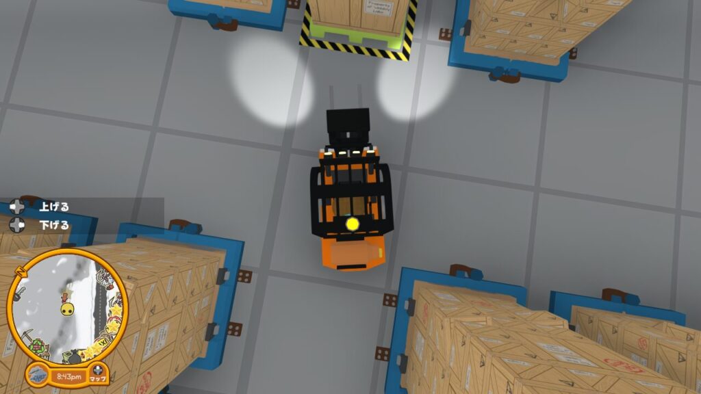積荷エリアはけっこう狭いので注意しましょう。多少ぶつかりながらでも積荷の移動はできますが、あまりにガンガンぶつかると積荷がずれたりする事もあります。