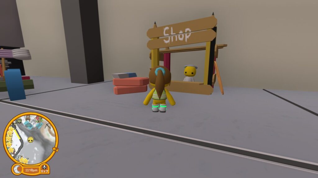 ↑研究所のレース(タイムトライアル)は研究所のラボで小さくなった後、このSHOP横から始められます。