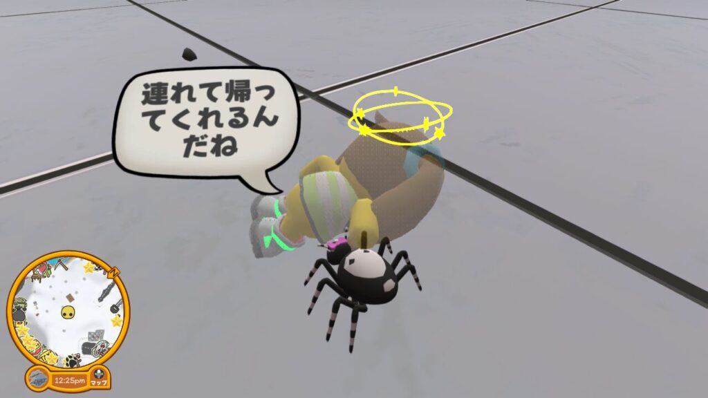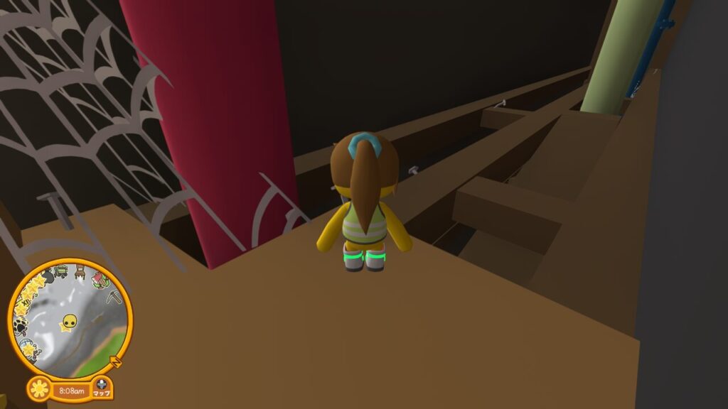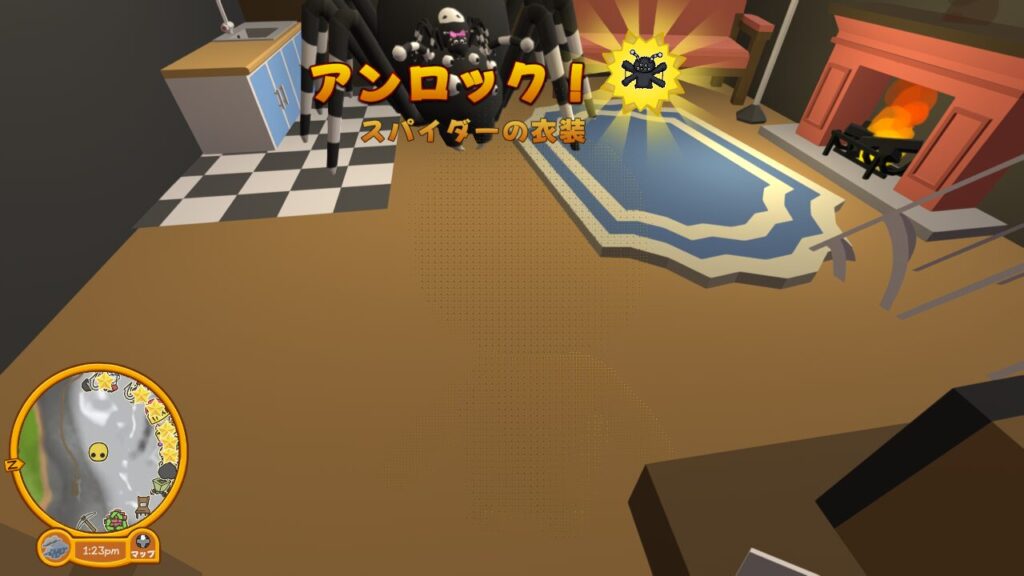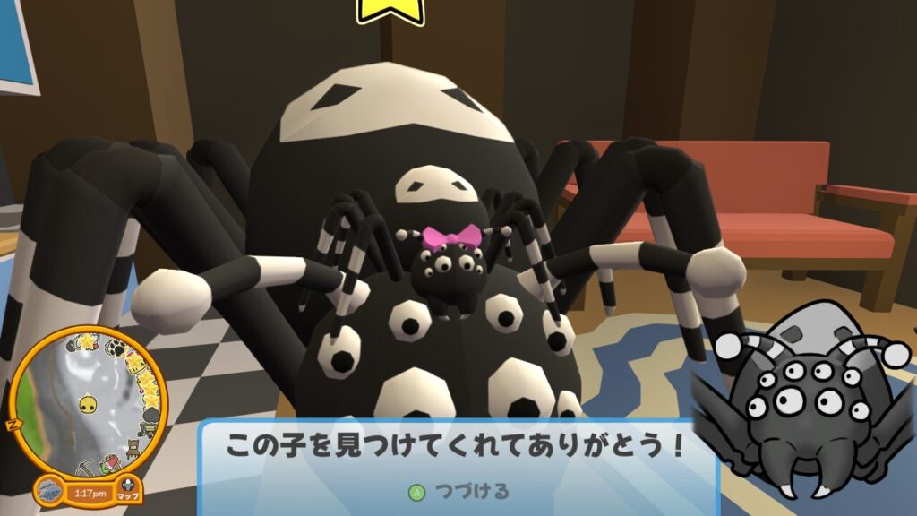 最上階には扉があり、中に入ると大きなクモ(といってもプレイヤー自体が小さくなってるので本来は大きくはない)がいるのでインタラクトします。