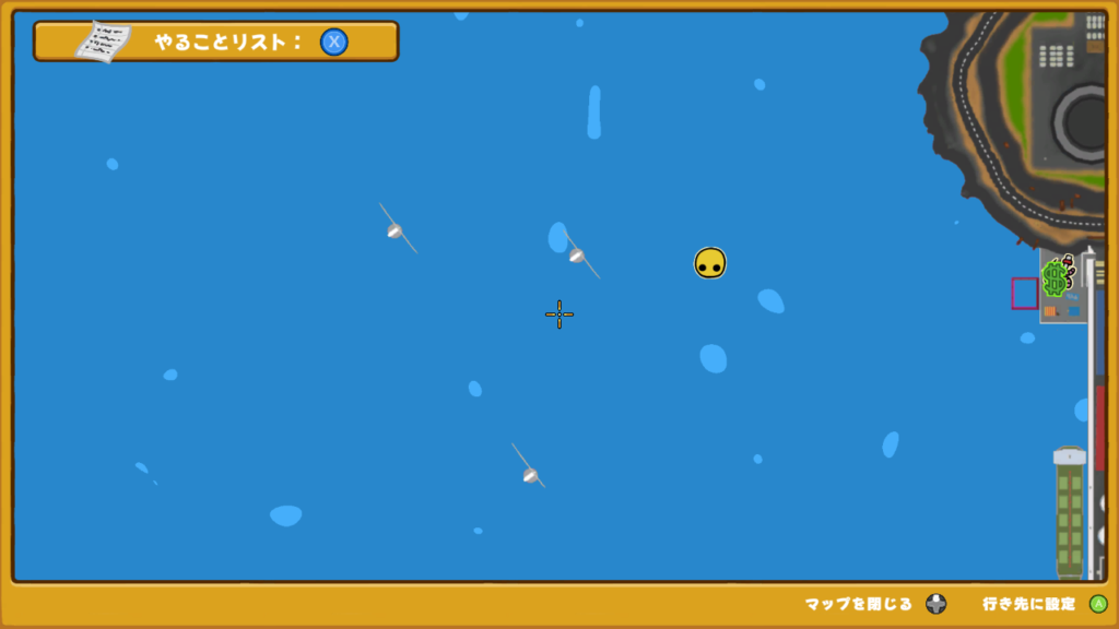 海に落ちたら溺死しリスポーンは基本的に漁港なので、落ちたらやりなおしです。そのため飛行系の乗り物よりも船をオススメした次第です…(笑)
