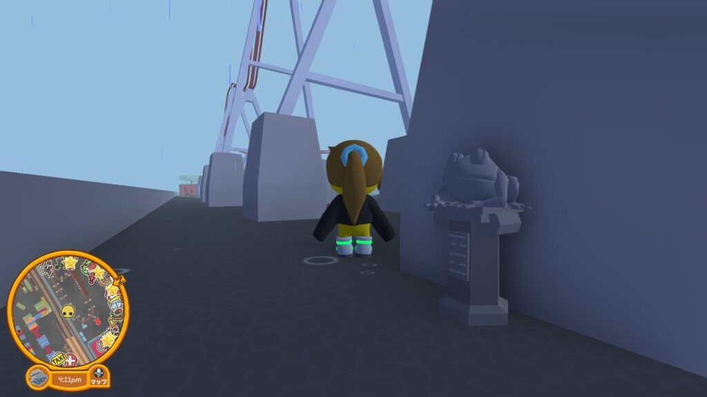 アンロックのヒントが風車にベロで張り付き振り回されるカエルのイラストだったので、風車の翼部分ばかりに注目して探し回ってしまったのでだいぶ遠回りをしてしまいましたが、まさか根本に石像があるとは…。