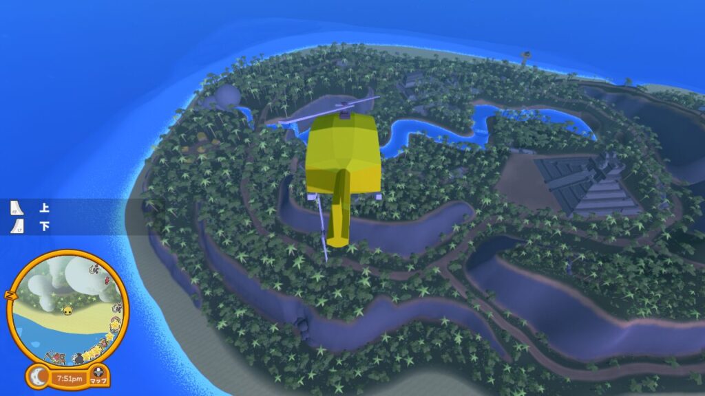 ヘリ気球、UFOなどの飛行系の乗り物で行くと難易度が跳ね上がる場所なので、船の方がおすすめです。