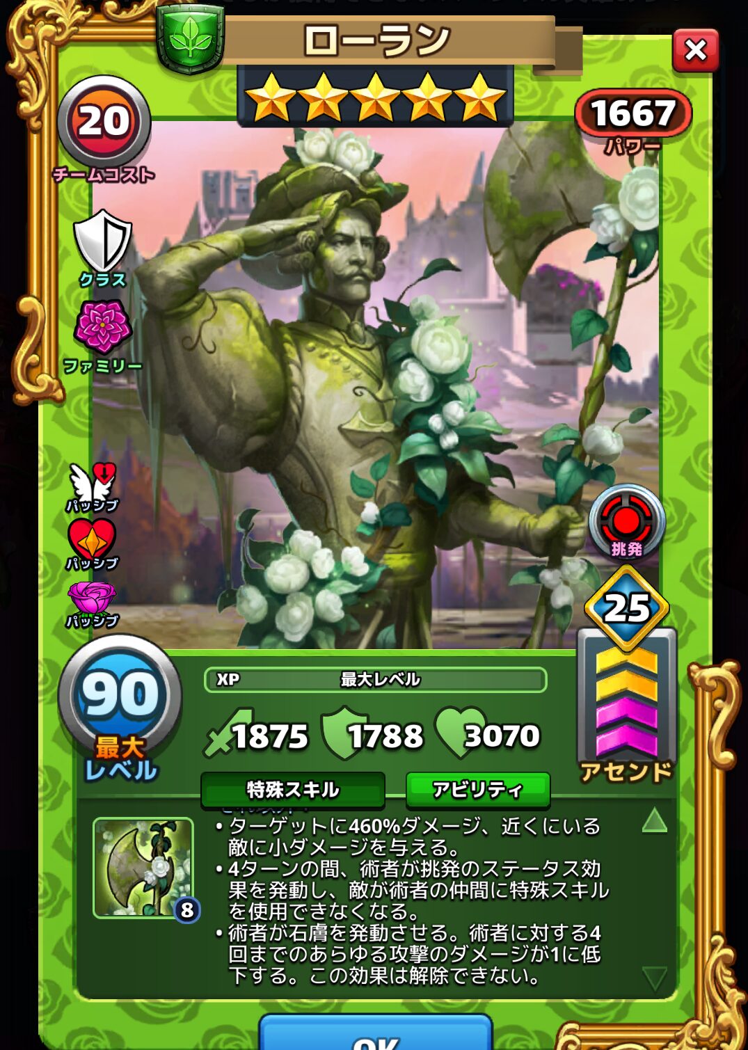 ローランのアビリティとパッシブスキルは以下の通りです。※達人アビリティ開放した場合