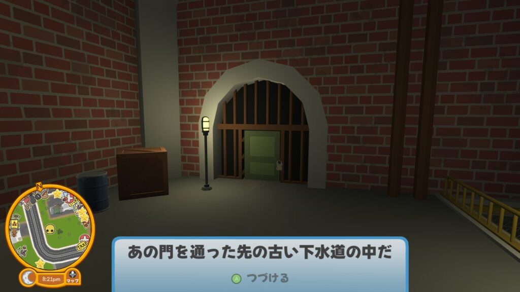 下水道テストに合格した状態で下水道の入り口に行くと扉を開けてくれるので、そのまま奥に進みましょう。