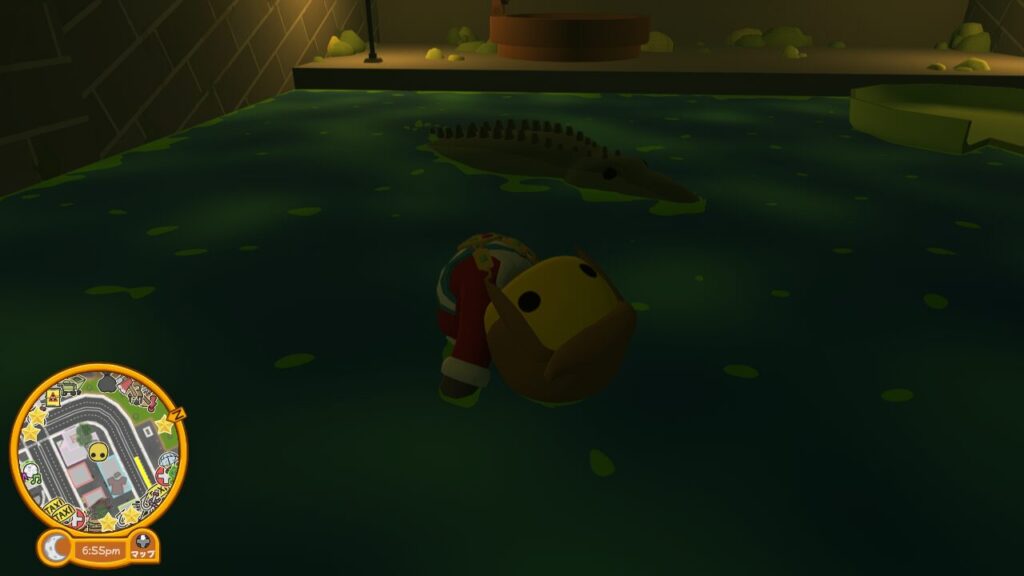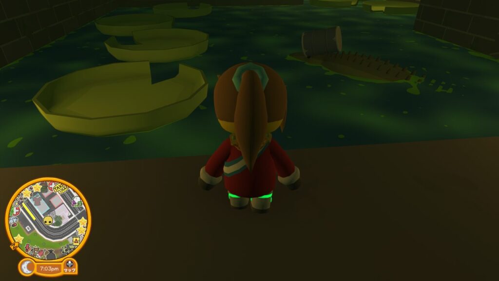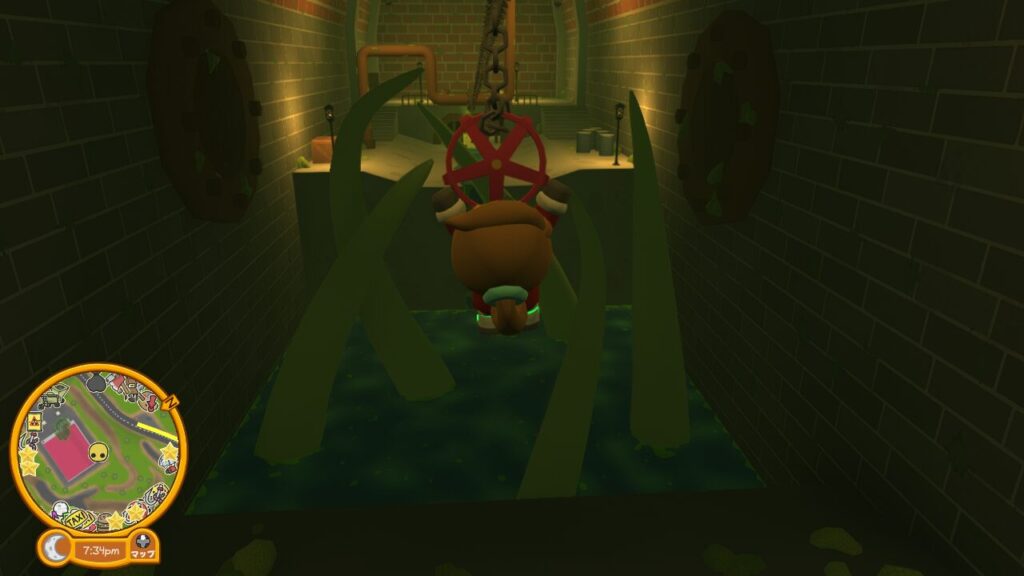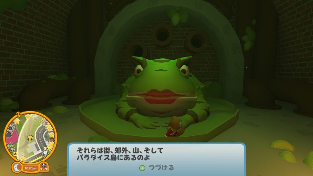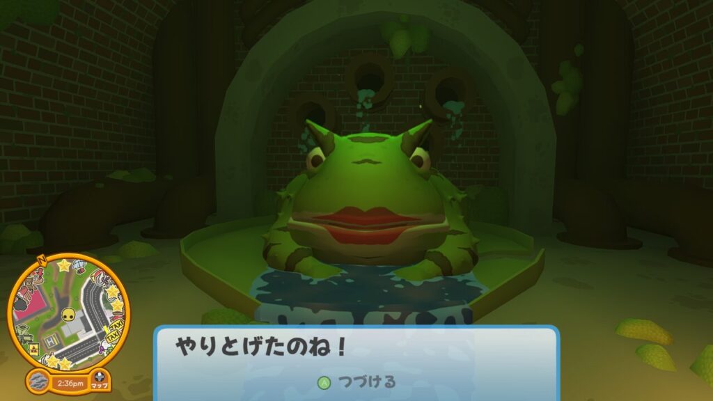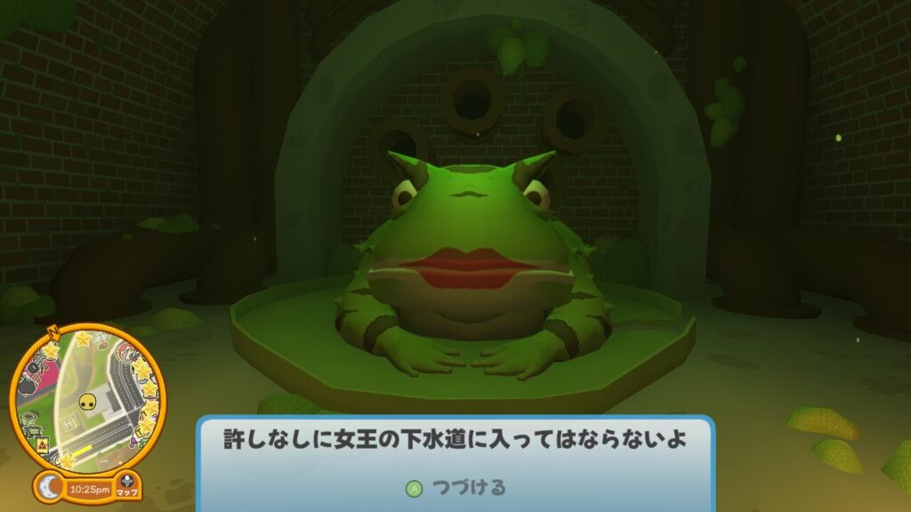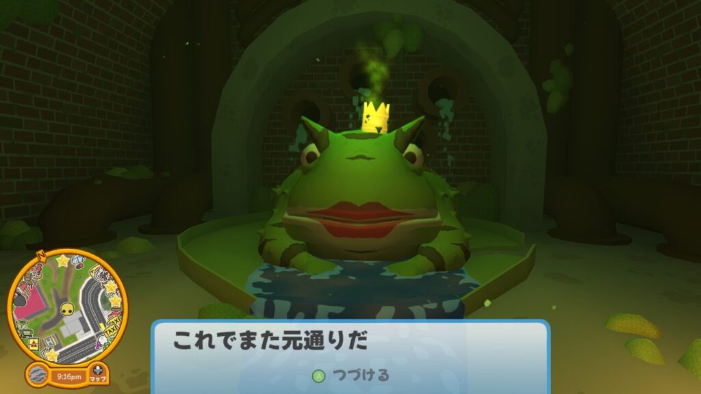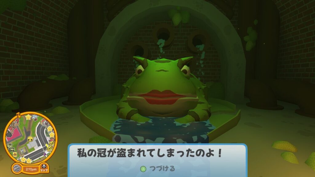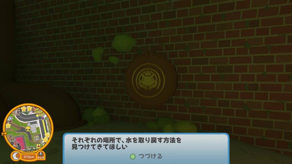 という事で下水道に水を取り戻すべく、カエルの紋章のマンホールをウォブリーアイランド中から探します。
