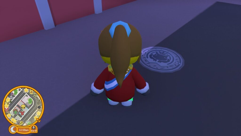 ↑パラダイス島のマンホールはこの辺りです。新聞配達で当て辛いターゲットがあるバザー会場の中ですね。