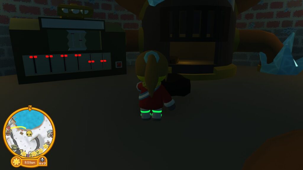 ↑ダンジョン内の様々な場所に石炭やレバーの見取り図が落ちてるので、これを中央の部屋まで運んで取り付ければOKです。