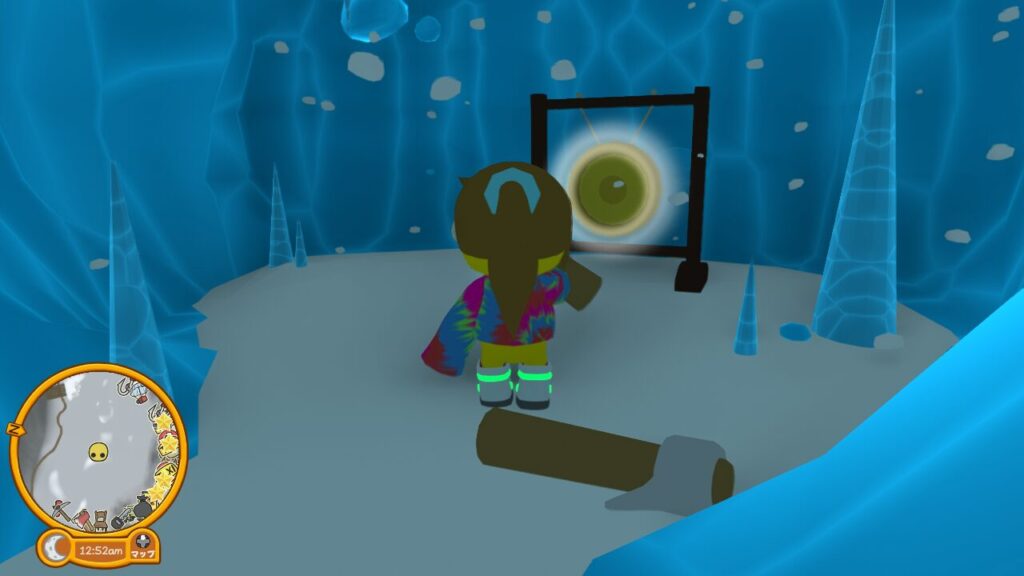 ドラを鳴らしたあとはペンギン空間の中央にある穴から滑り落ちて先に進みます。どの穴でも大丈夫なはずです。