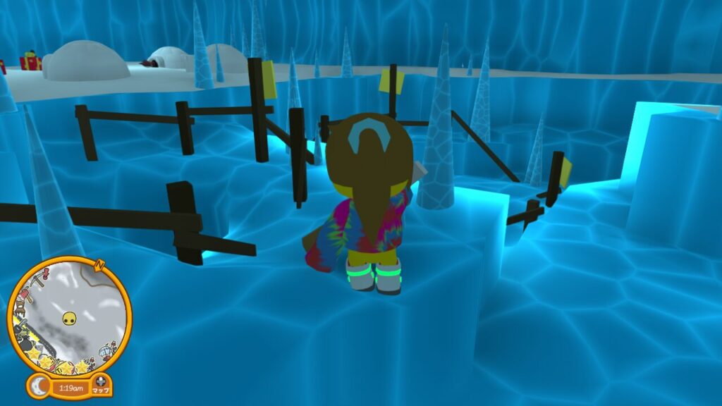 さてそれでは氷漬けウォブリーから向かって左奥のソリに乗って、さらに氷の洞窟の内部へと進んで行きましょう。