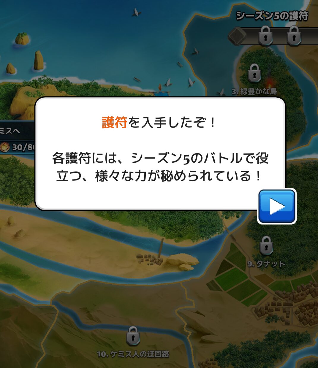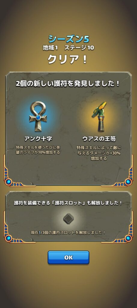 エンパズのシーズン5マップステージでは、一定数のステージをクリアするごとに護符というパワーアップが獲得できます。