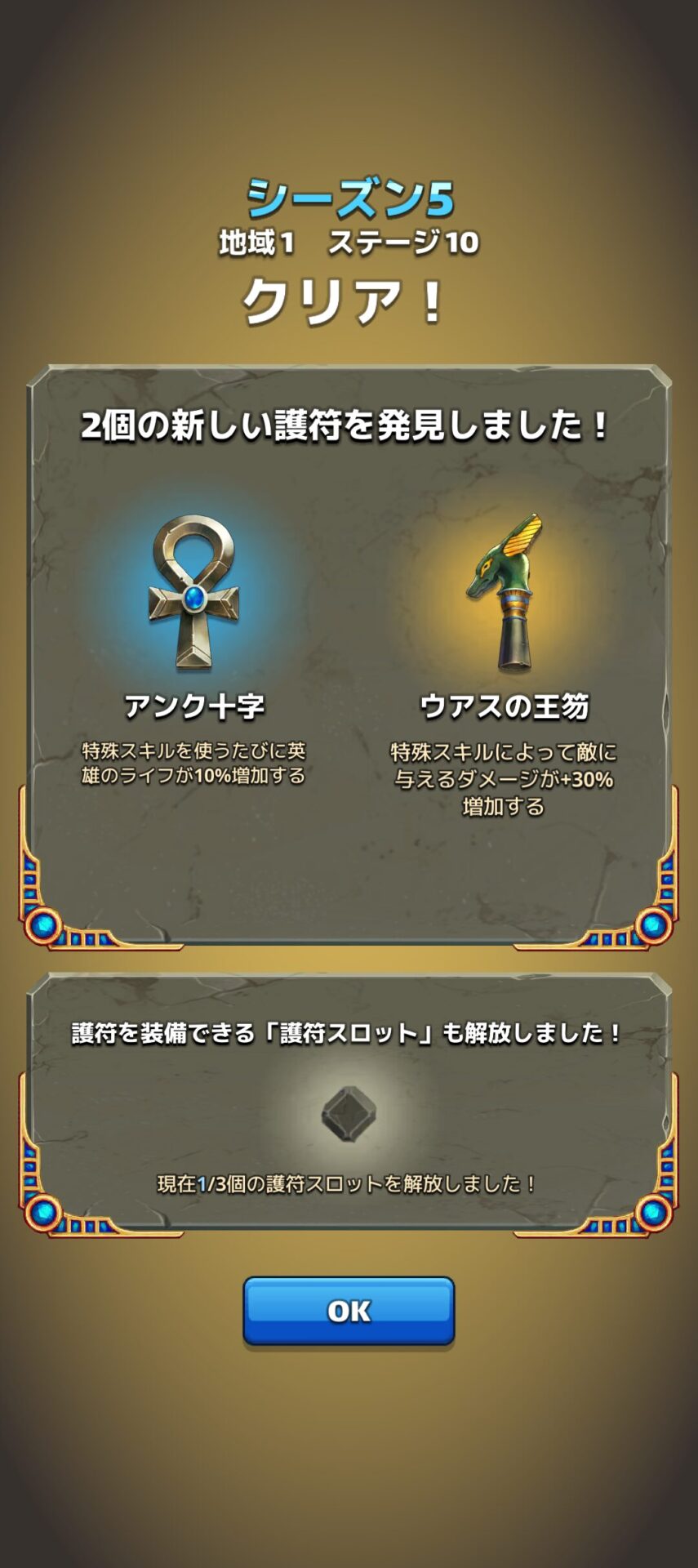エンパズのシーズン5マップステージでは、一定数のステージをクリアするごとに護符というパワーアップが獲得できます。