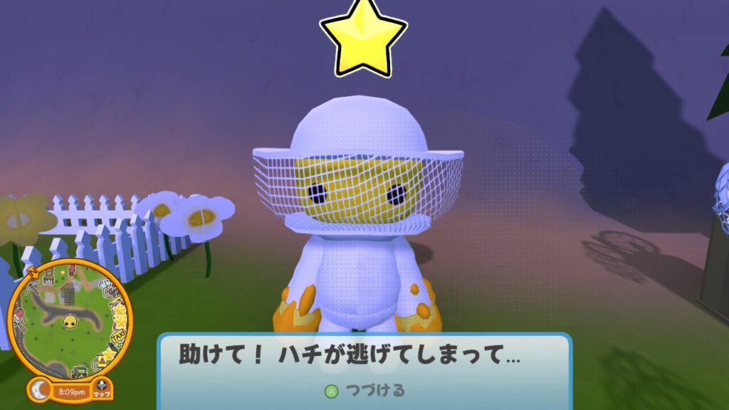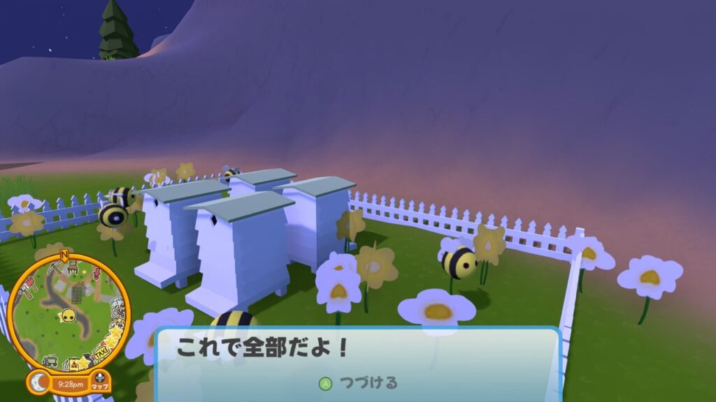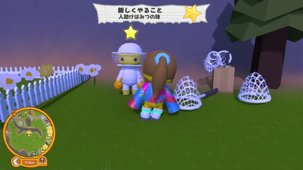 ハチ農家の横にある虫取り網でハチを6匹捕まえればクリアとなる簡単なタスクです。