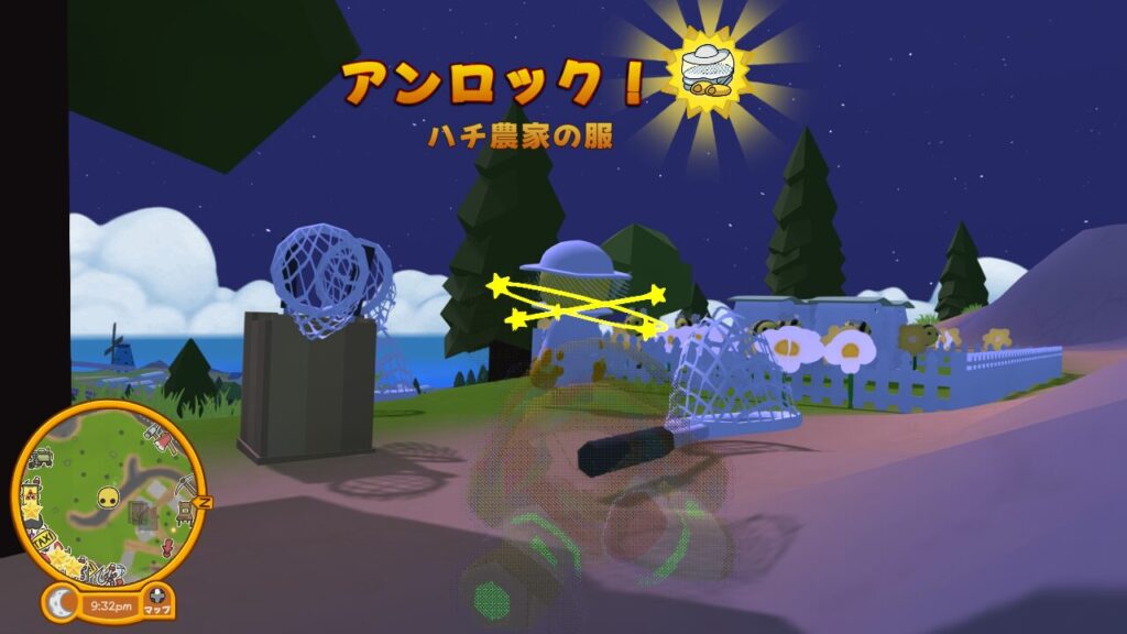 ハチを全て捕獲してハチ農家の元に戻るとタスククリアとなり、ハチ農家の服がアンロックされます。