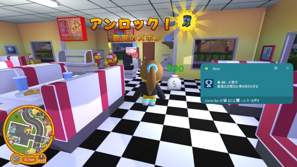 そして初回クリアの場合は、農家のズボンと、実績(トロフィー)の【大豊作】が解除されます。