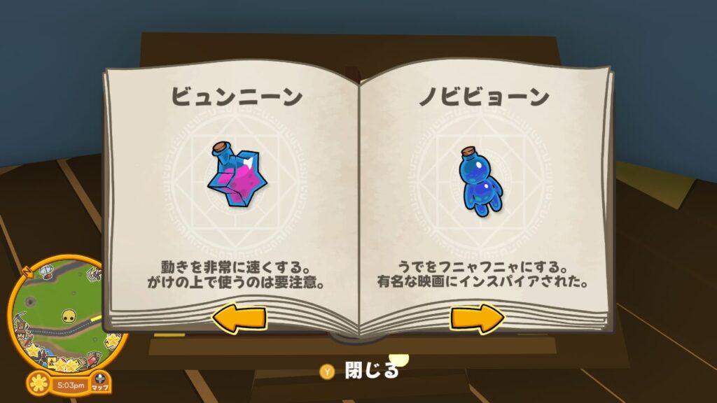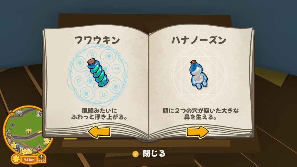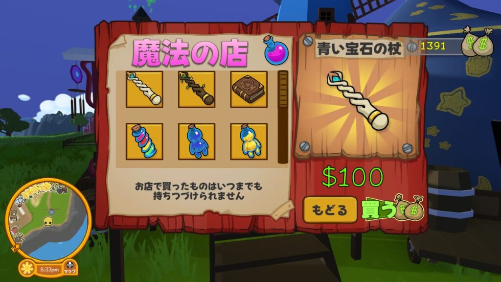 魔法の店で売っているアイテムもそうですし、その他ウォブリーアイランド内で購入できるアイテムのほとんどはなんの説明文も書いておらず、どうやって使うのか、そもそもなんのために存在しているのかすらサッパリわからないんです(笑)