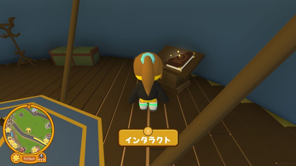 テントの壁沿いにインタラクトできる本がありますので、インタラクトしましょう。