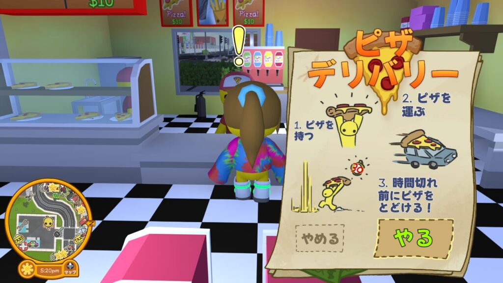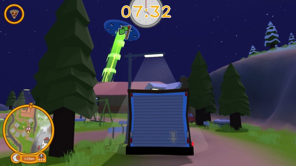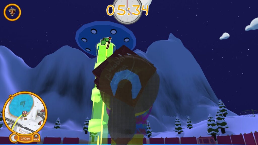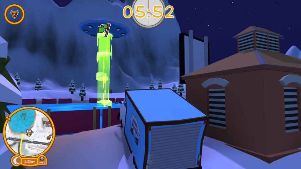ではUFOが静止したので、ピザを届けるパートに入ります。