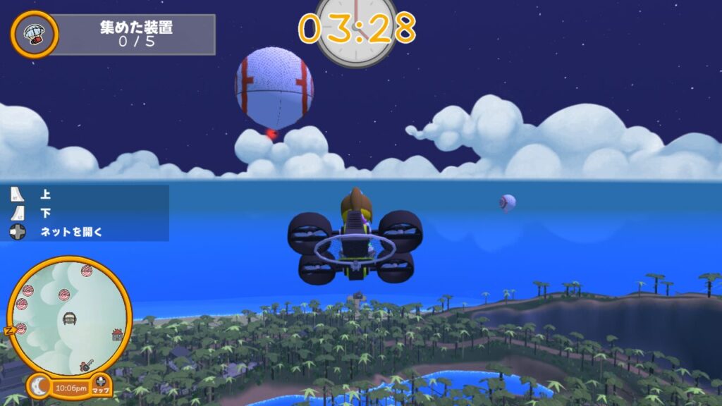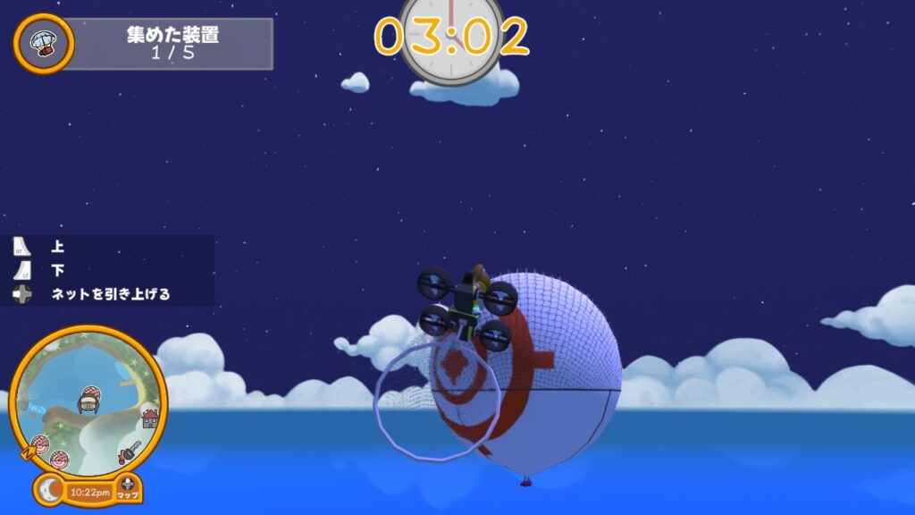 割れたバルーンからドローンが出てくるのでネットでキャッチしますが、ネットを出したままバルーンを割ると割った瞬間にキャッチできる場合もあるので、時間短縮になります。