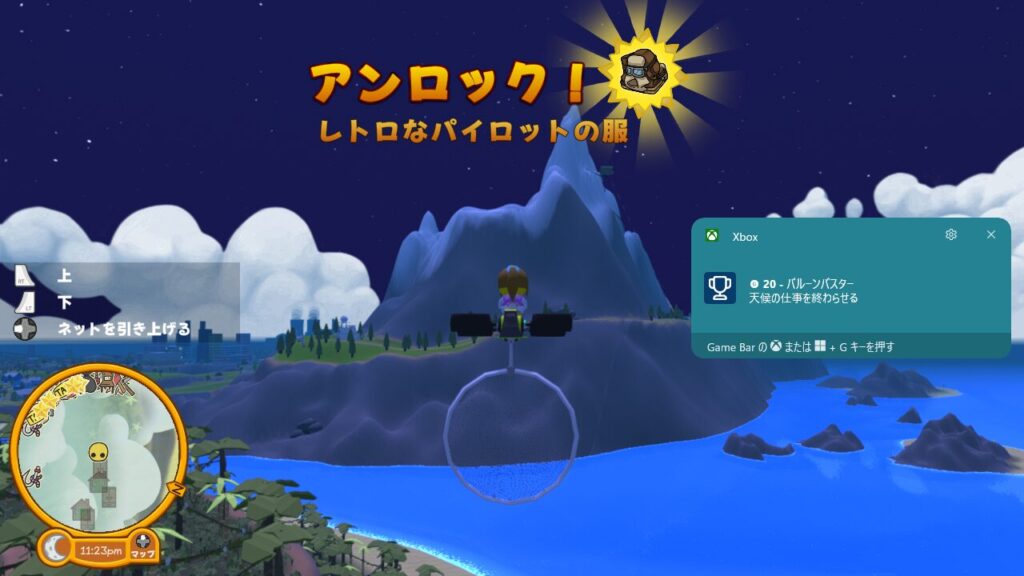 そして初回クリアの場合は、レトロなパイロットの服と、実績(トロフィー)の【バルーンバスター】が解除されます。