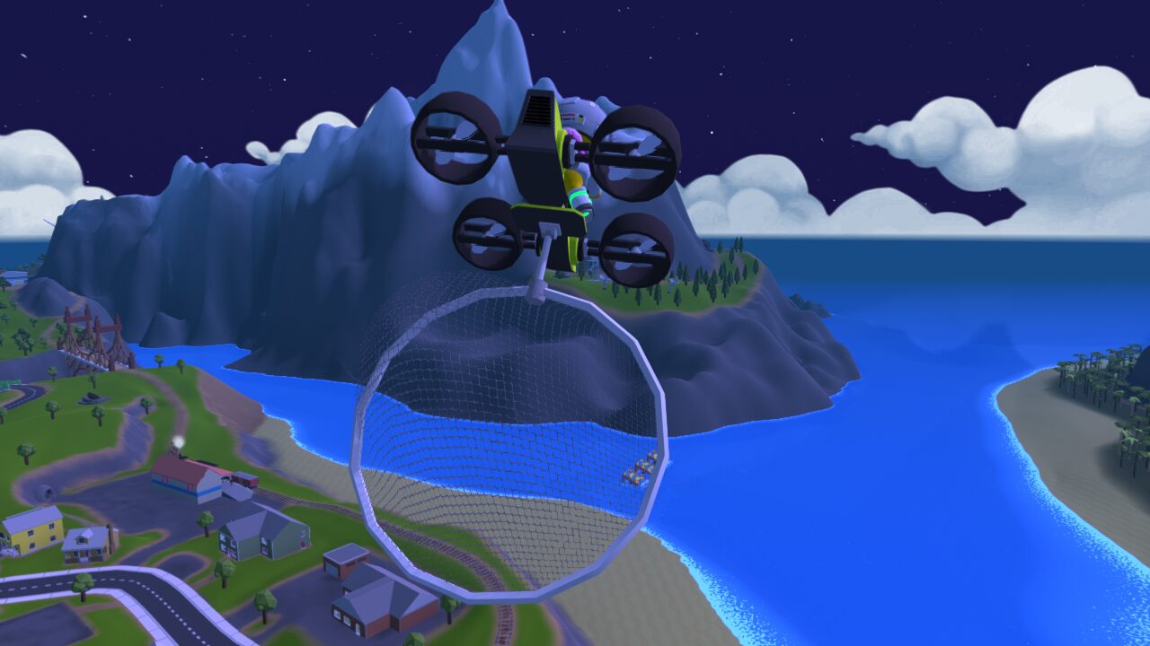 割れたバルーンからドローンが出てくるのでネットでキャッチしますが、ネットを出したままバルーンを割ると割った瞬間にキャッチできる場合もあるので、時間短縮になります。