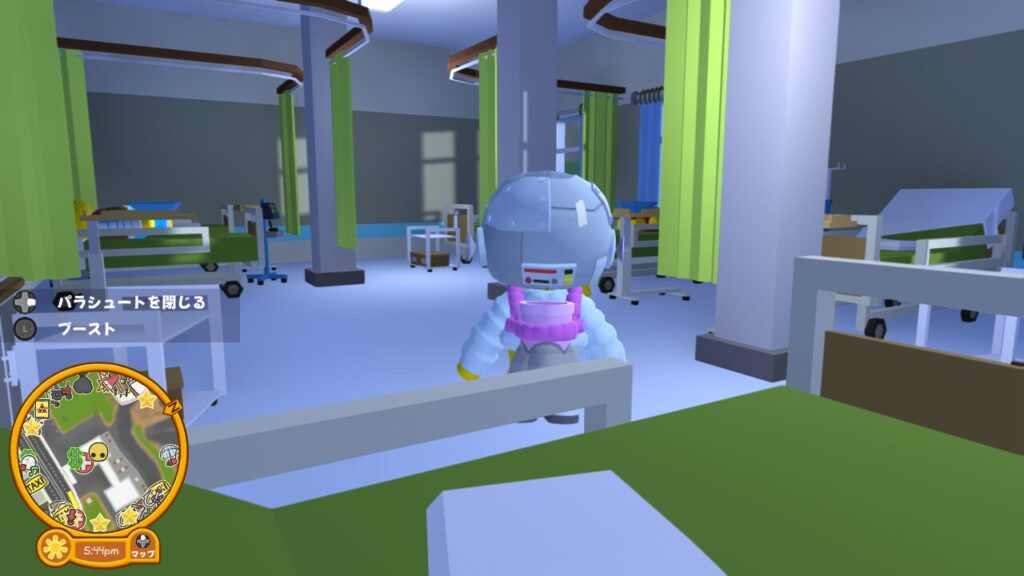 ↑余談ですが、目覚めた病室と同じフロアの別室にはプレゼントボックスが隠されているのでついでに取得しておきましょう。