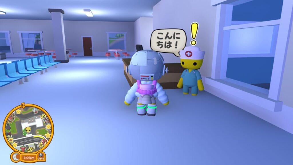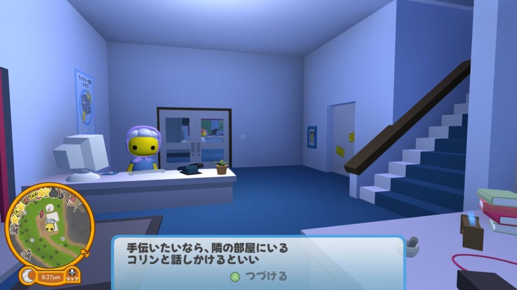 ↑嵐の中でデータ収集に成功していれば、病院送りにされたあとに看護師ウォブリーが話かけてきますので、これが確認できましたらコリンの元へ戻りましょう。