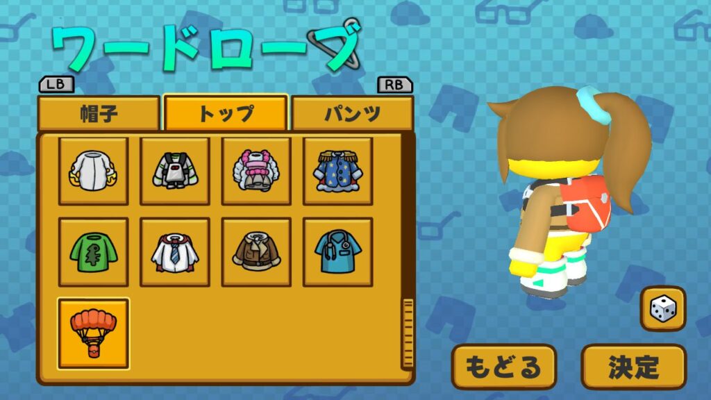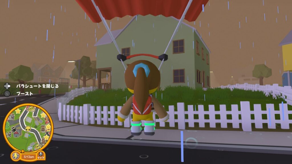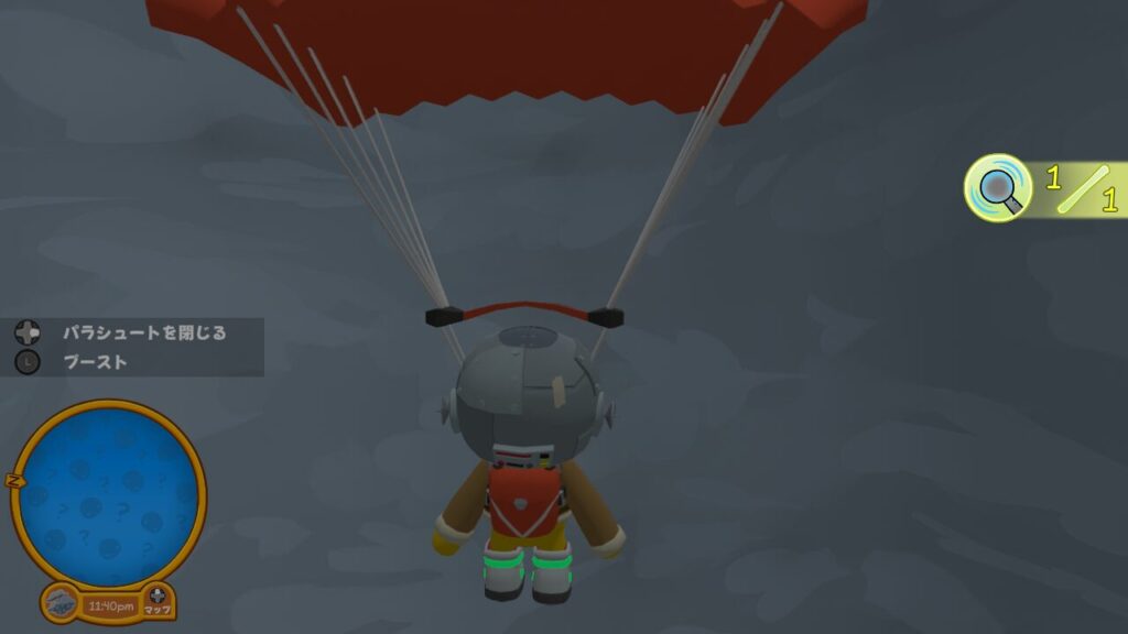 パラシュートは高所から飛び降りた時にパラシュート降下ができるようになるコスチュームです。
