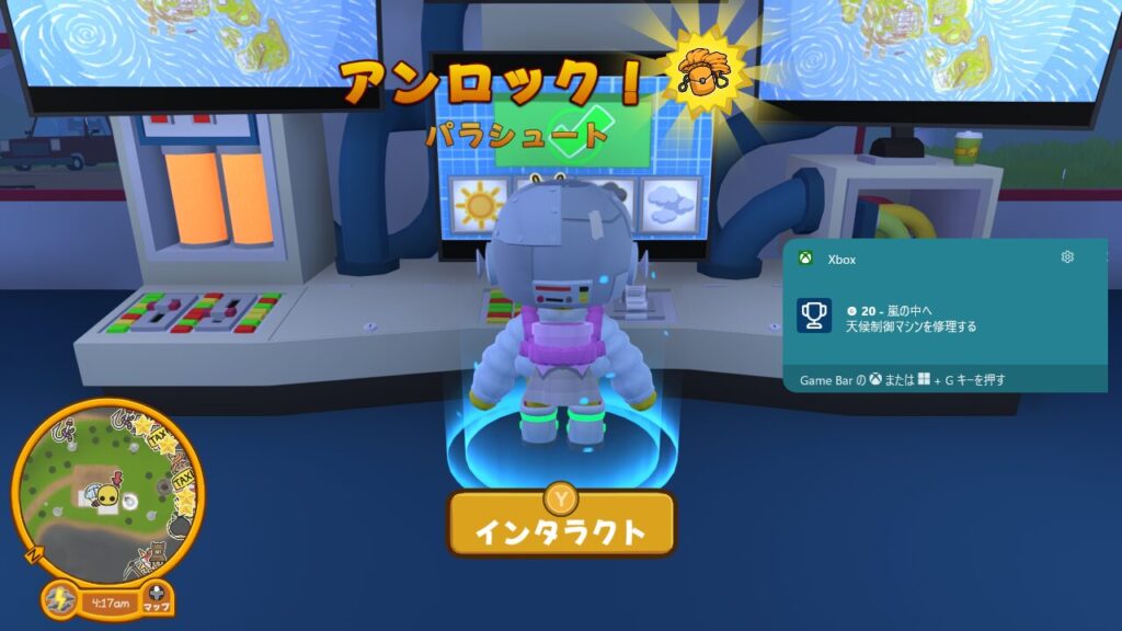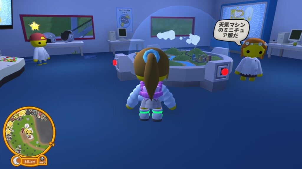 ↑天気マシンは気象研究者の仕事の開始位置である気象研究所で、特定のタスクを完了する事でアンロックできます。
