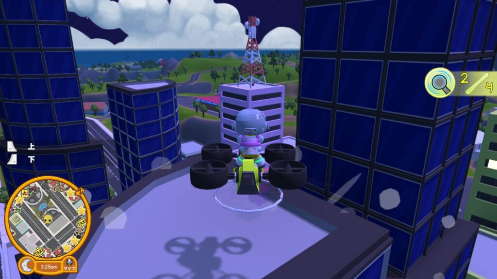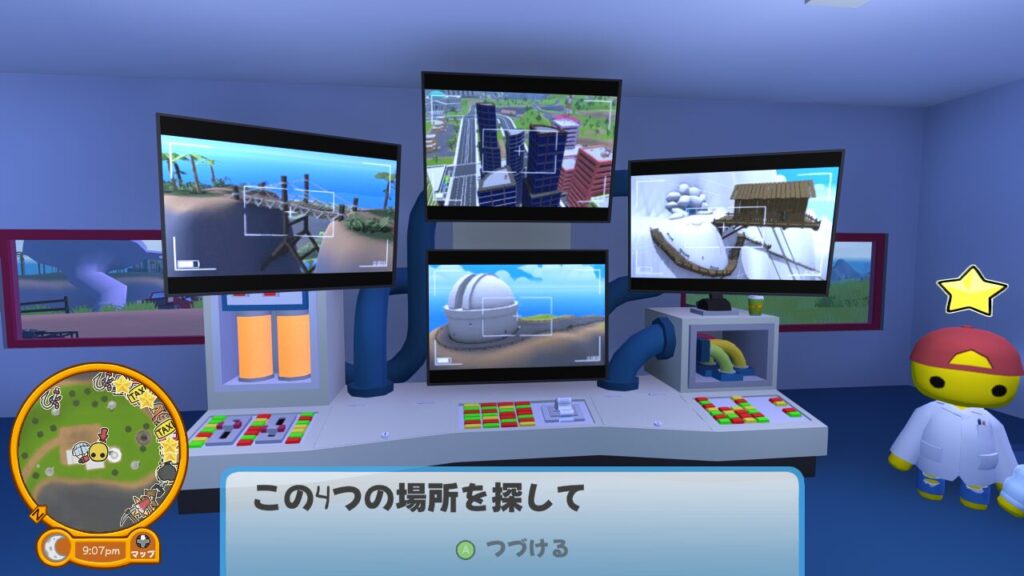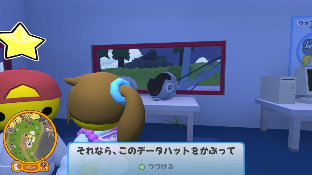 ↑アンロックされるデータハットをワードローブから装着して、モニターに映る4地点に気象データを集めにいきましょう。