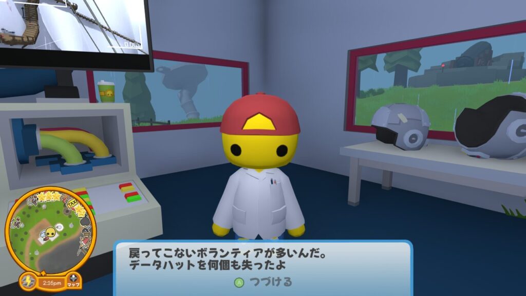 コリンにインタラクトすると気象データ集めに協力する事になる。