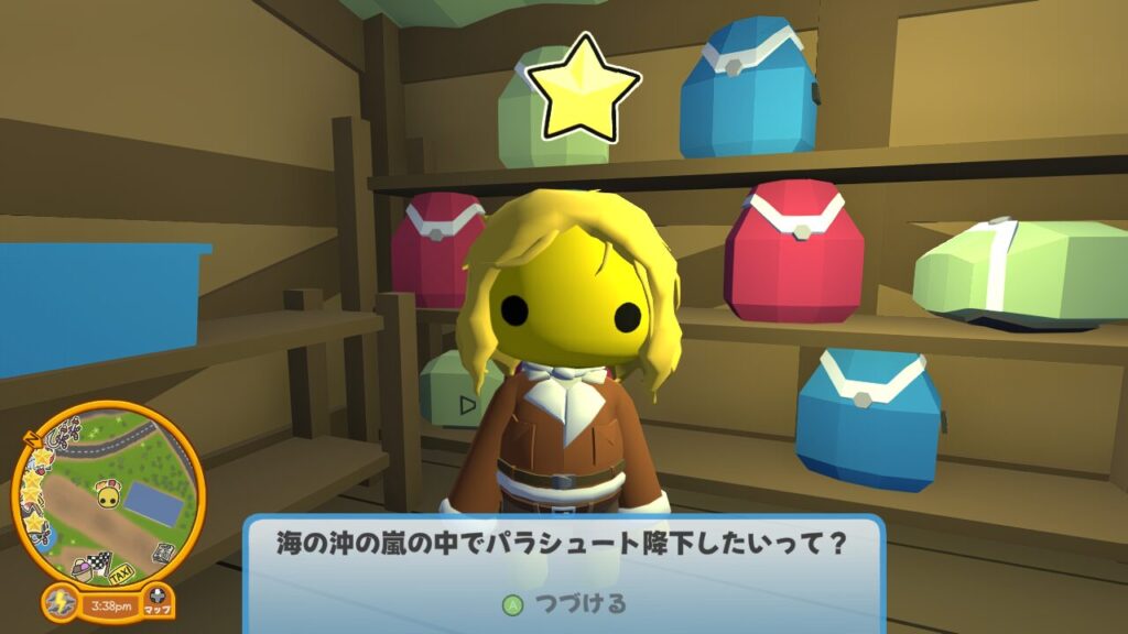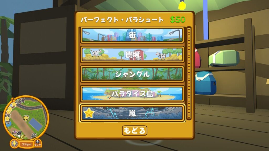 嵐の中に飛び込むためには、パラダイス島のパーフェクト・パラシュートにいるウォブリーを訪ねろとの事。