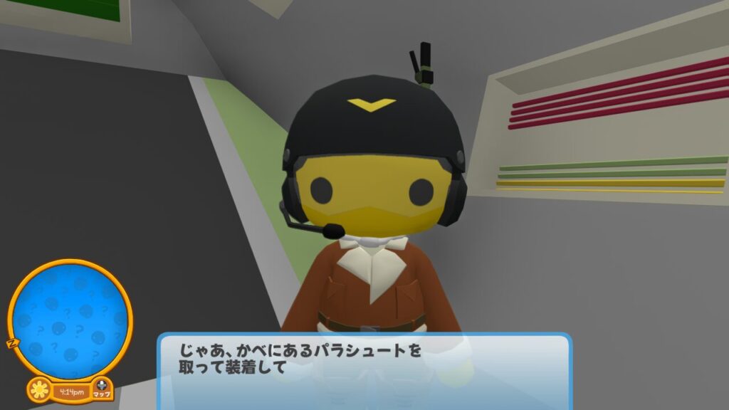 ではパラシュートを装着して降下の瞬間に備えましょう。