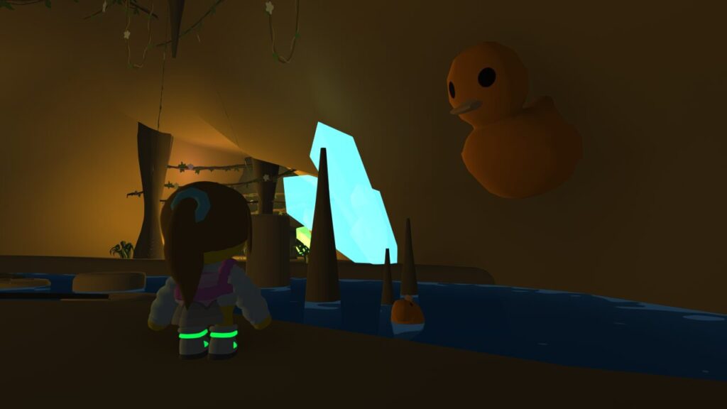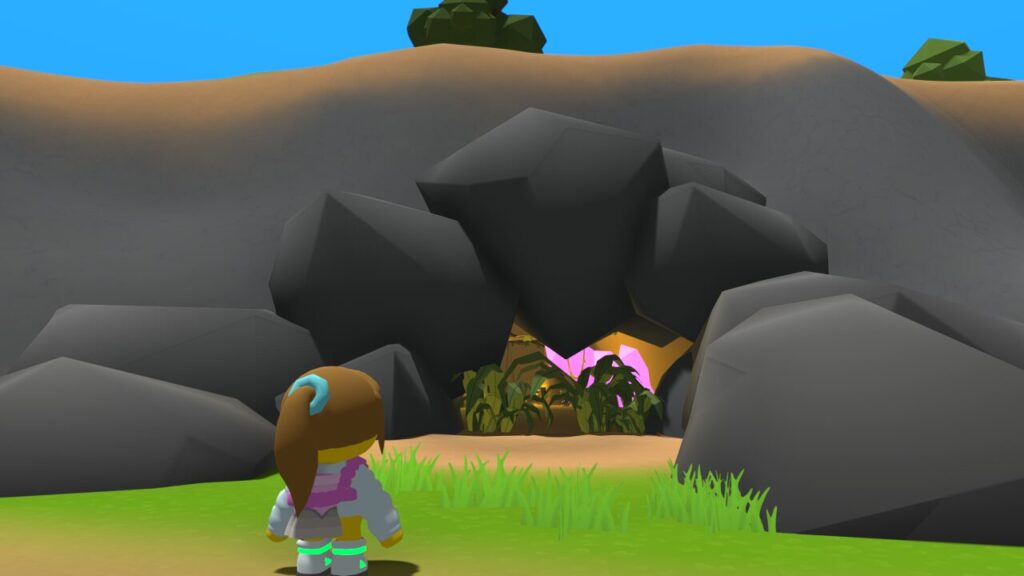 ↑先日ロケット作りの待機時間中に暇だったのでてきとうにウォブリーアイランドを散策していると、ゴルフ場の付近に洞窟のような場所があるのを発見しました。