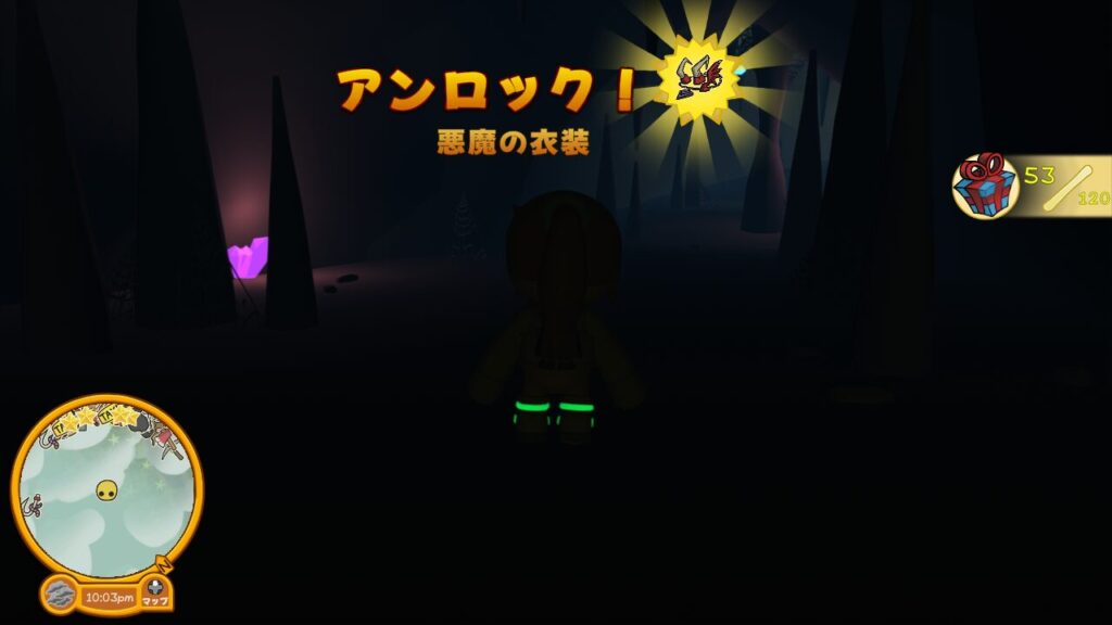 そうすると悪魔の衣装が入ったプレゼントボックスがあるので、回収すれば滝の裏遺跡での冒険は完了となります!