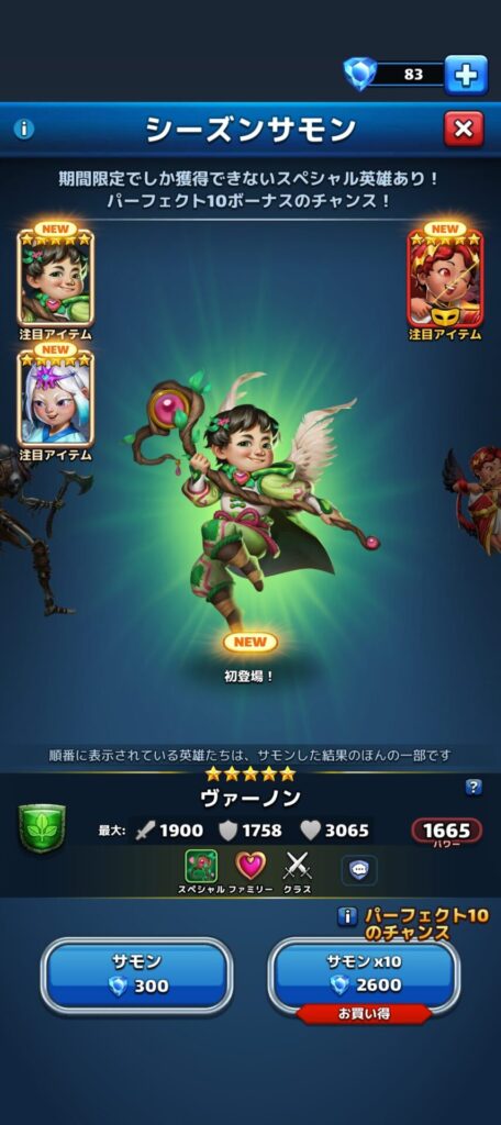 出た順番通りにサモン結果を報告致しますので、是非参考にして頂ければと思います。