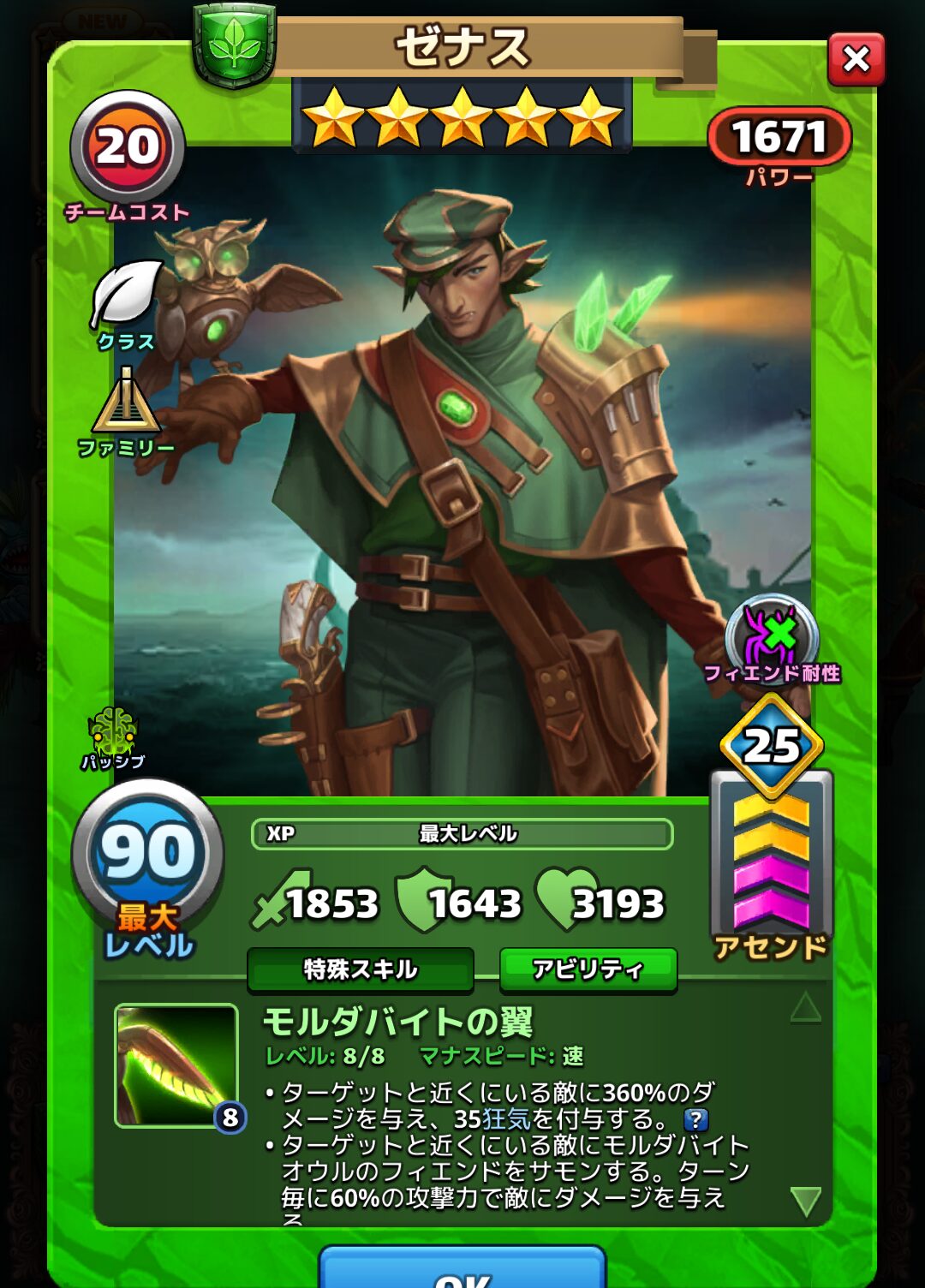ゼナスのアビリティとパッシブスキルは以下の通りです。※達人アビリティ開放した場合