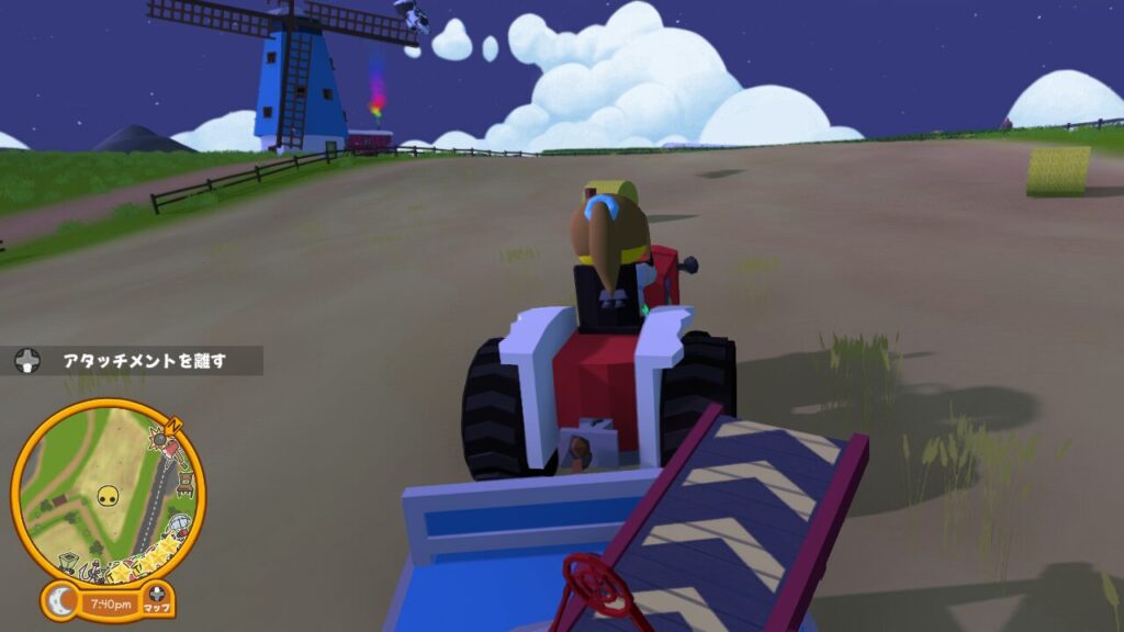 トラクターなどのアタッチメントとして牽引可能なので、マルチプレイやオンラインなら一人が運転、一人がトマトシューターでトマトを撃ち出して遊べます。