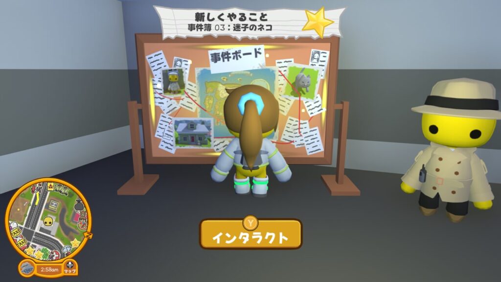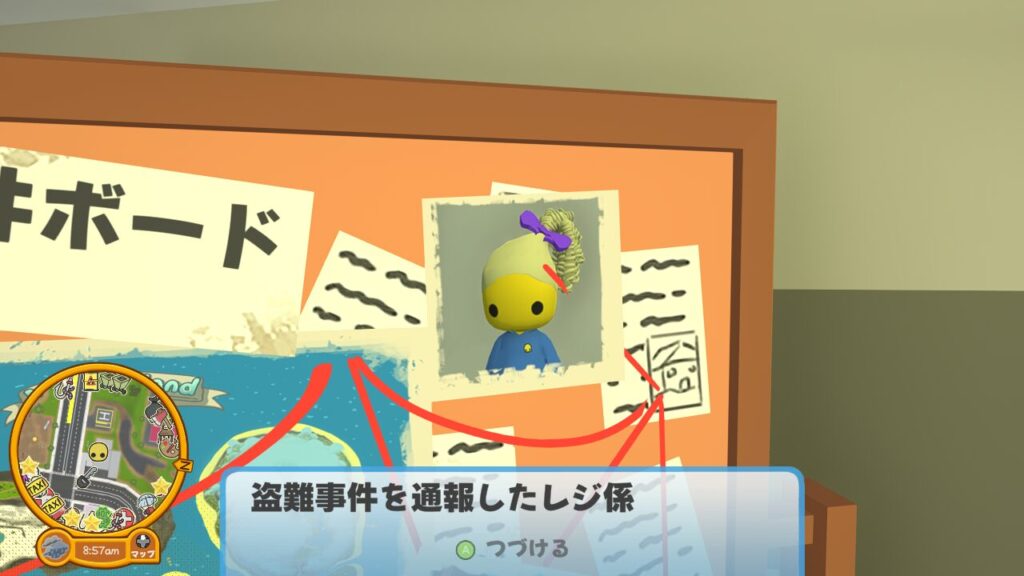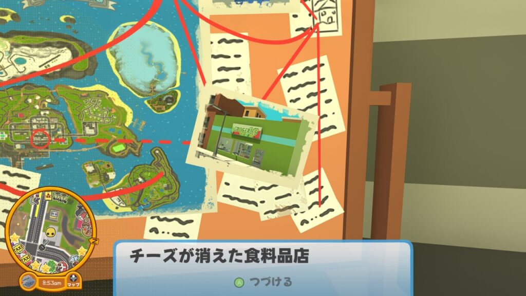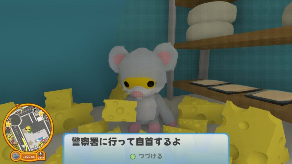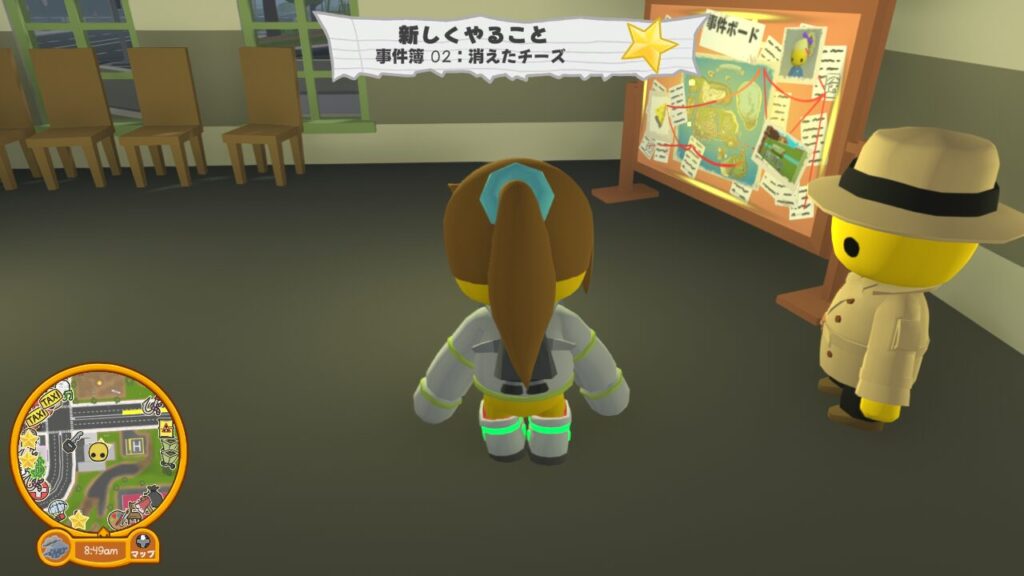 消えたチーズタスクが完了すると、後日また事件があると警察署に呼び出されます。