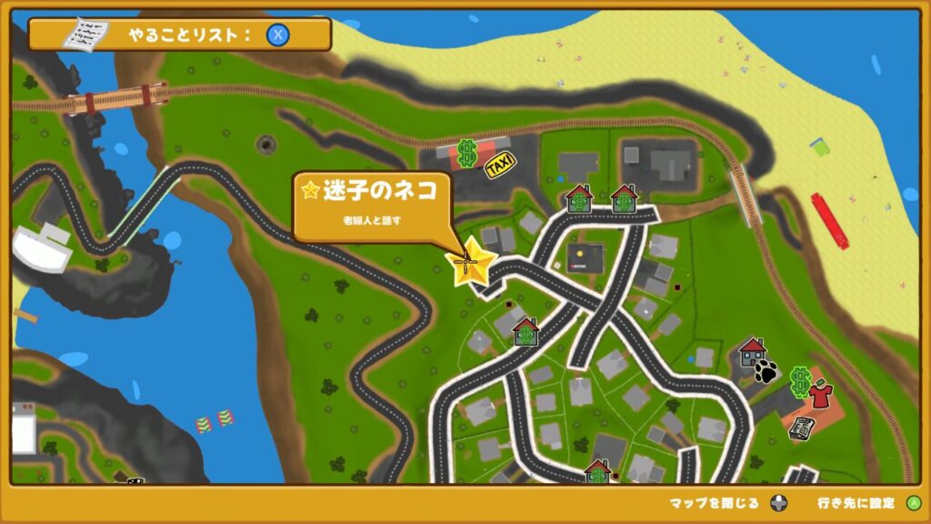 では住宅街エリアの迷子のネコタスクの場所に向かいましょう。