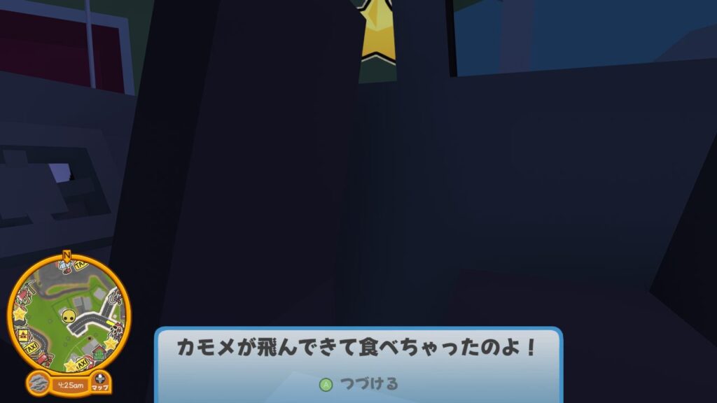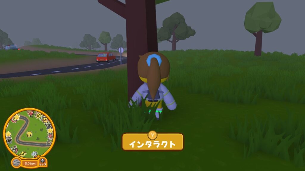 木に近づくとインタラクトできるので、インタラクトしてネコを探しましょう。木の近くにいくと「ニャーン」と猫の鳴き声がするのですぐにわかります。