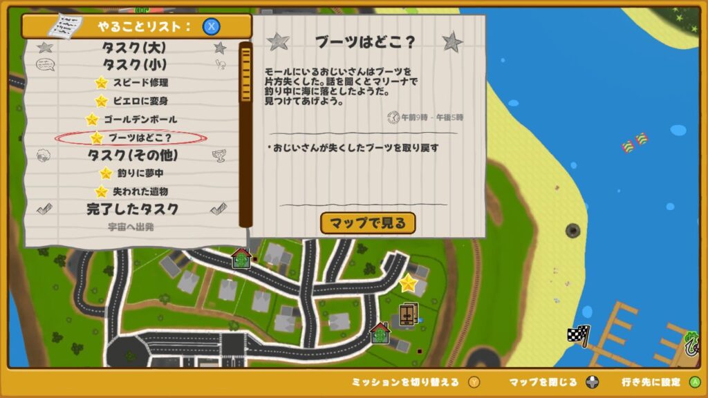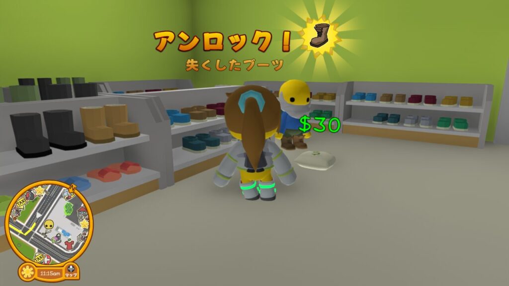 ↑ブーツはどこ?のタスクは、住宅街エリア(実家があるエリア)のウォブリーモール内2階から開始する事ができます。