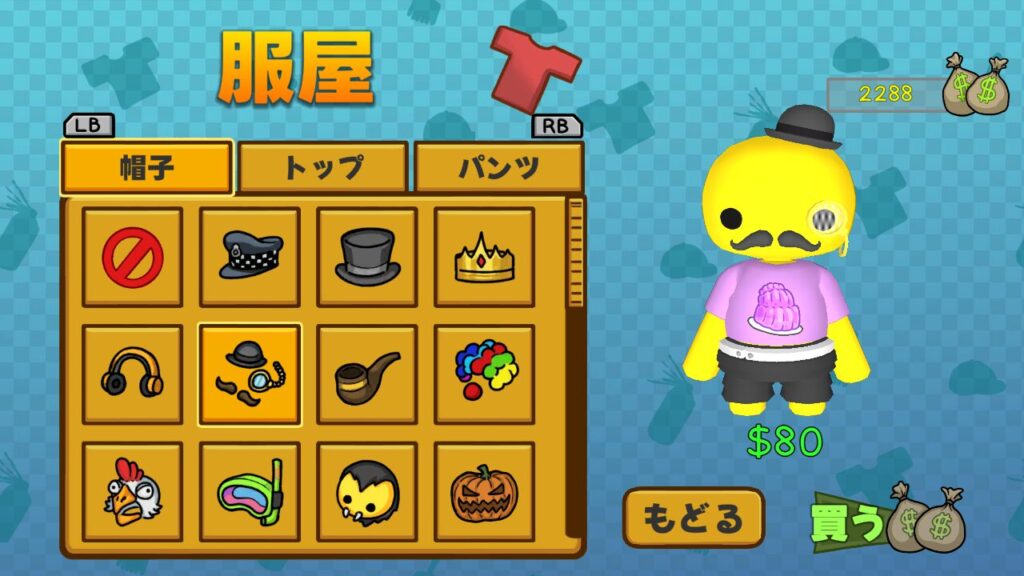 というわけで売ってるのかすらわかりませんが、ゼリーマンが着ている服装を完コピするべく、ウォブリーアイランド中の衣料品店をめぐってみる事にしました。