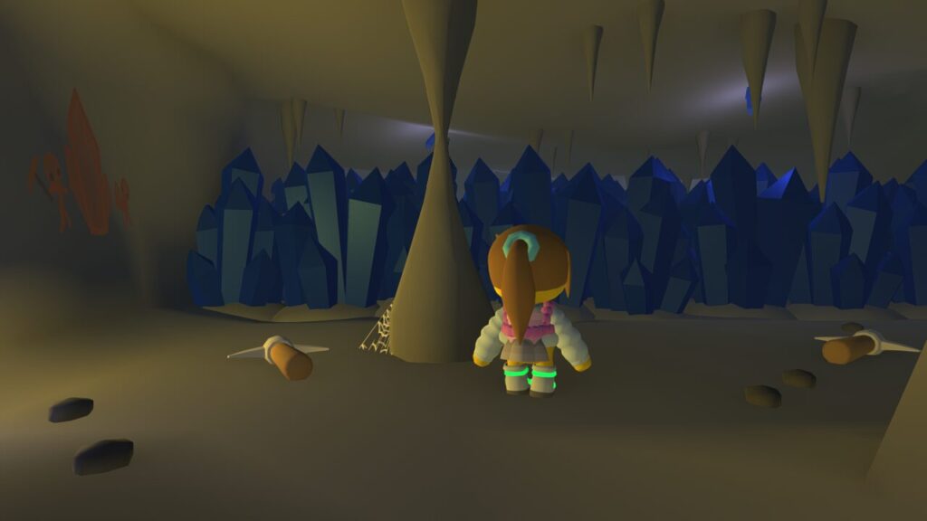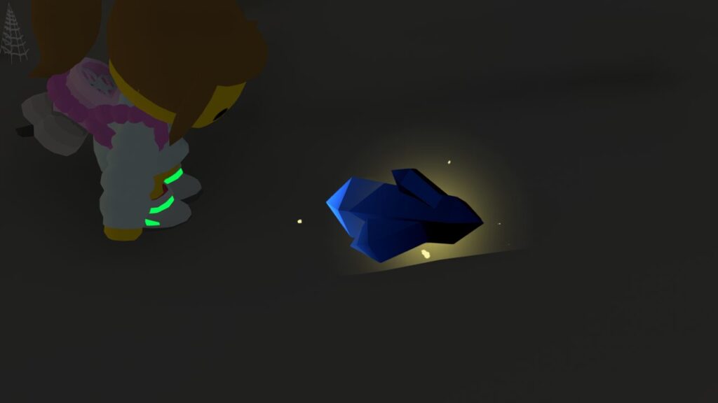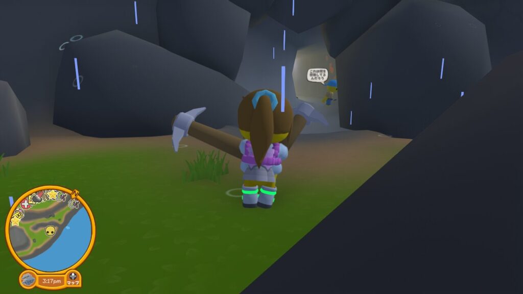 落ちてたツルハシで青いクリスタル(たぶんサファイア)をバリバリ割っていきましょう。